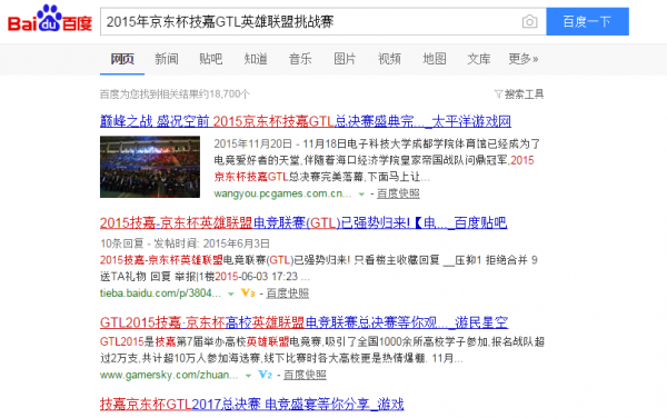 2015 年京东杯技嘉GTL英雄联盟挑战赛搜索结果