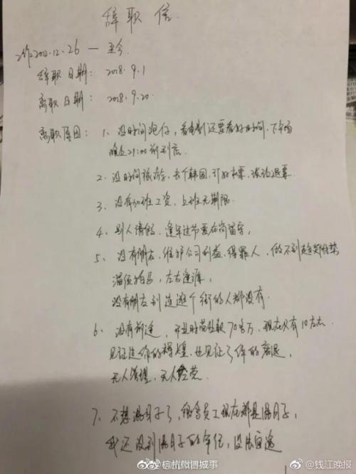 前几天,杭州一姑娘的辞职信在微博疯传。她列出了辞职的七大理由,字字扎心。