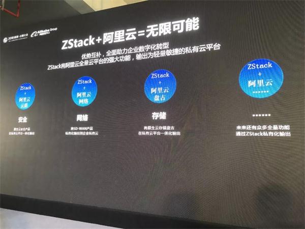 同时,ZStack也可以将阿里云全量云平台的强大功能,输出为轻量敏捷的私有云平台。双方优势互补,全面助力企业数字化转型。正如阿里云事业部总经理马劲提到的,ZStack完成了阿里云在公共云、专有云和混合云的关键拼图。目前,ZStack+阿里云已经服务了徐工集团、扬翔集团、农信互联、公安部四所、云上贵州、南京大学等多个标杆客户。