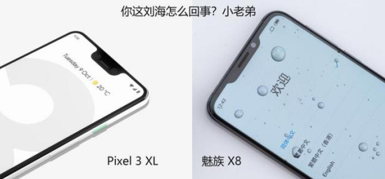 同样是首款刘海屏手机,与即将首发的魅族X8对比起来,Pixel 3 XL这个粗刘海一点都不占优势啊!可谓天壤之别。