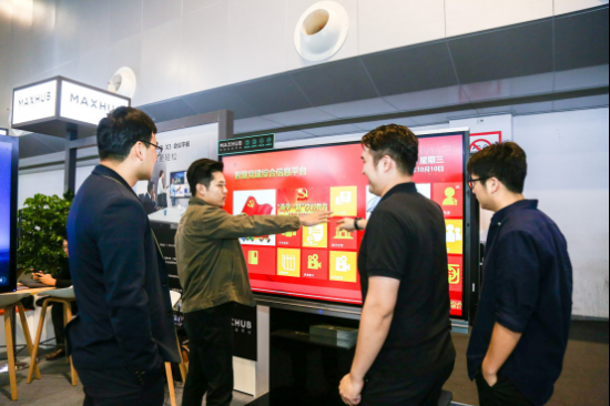 而政府机构、事业单位应用的MAXHUB党建方案,全面覆盖各种党建公共学习资源、新鲜资讯、党员风采展示、党会纪要记录等,并通过内置智能书写、无线传屏、书写内容扫码分享等功能实现培训内容快速分享,助力党建工作高效开展,党课精神更深入地传播。