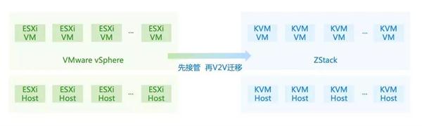 在集团化的多云场景下,用户可能需要对虚拟机进行V2V迁移操作。该操作往往需要繁琐的流程,既耗时又容易出错。针对该需求,ZStack 3.0支持用户直接在UI界面上把接管的VMware虚拟机迁移到KVM集群中,最大化精简操作流程。更重要的是,ZStack支持批量迁移,用户在轻点鼠标之后,迁移海量VMware虚拟机的事情就可以轻松交给ZStack的批量任务来完成了。