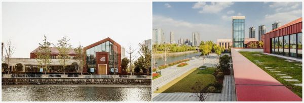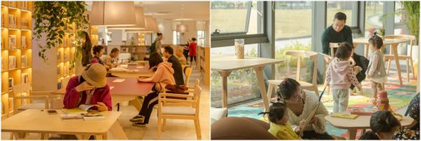 读书馆外则是占地近4万㎡的江一公园,在馆内看书时,抬头望见北塘河,低头可闻桂花香,市民将在这里获收获读书和休闲一体化的公共文化体验。