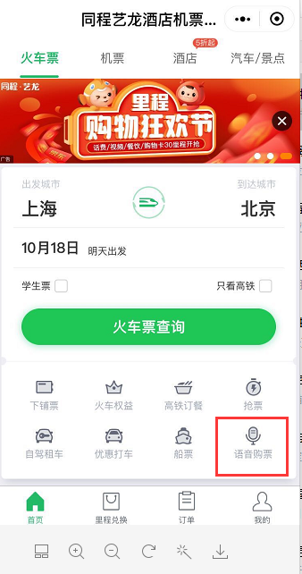 近日,“同程艺龙酒店机票火车”微信小程序的语音购票功能进入测试阶段,部分用户可以率先体验此功能。据了解,与传统购买火车票方式不同,语音购票无需手动输入出发地、始发地、时间等相关信息进行搜索订票,只需简单的一句话,告知出行需求,几秒之内即出现满足需求的车次。