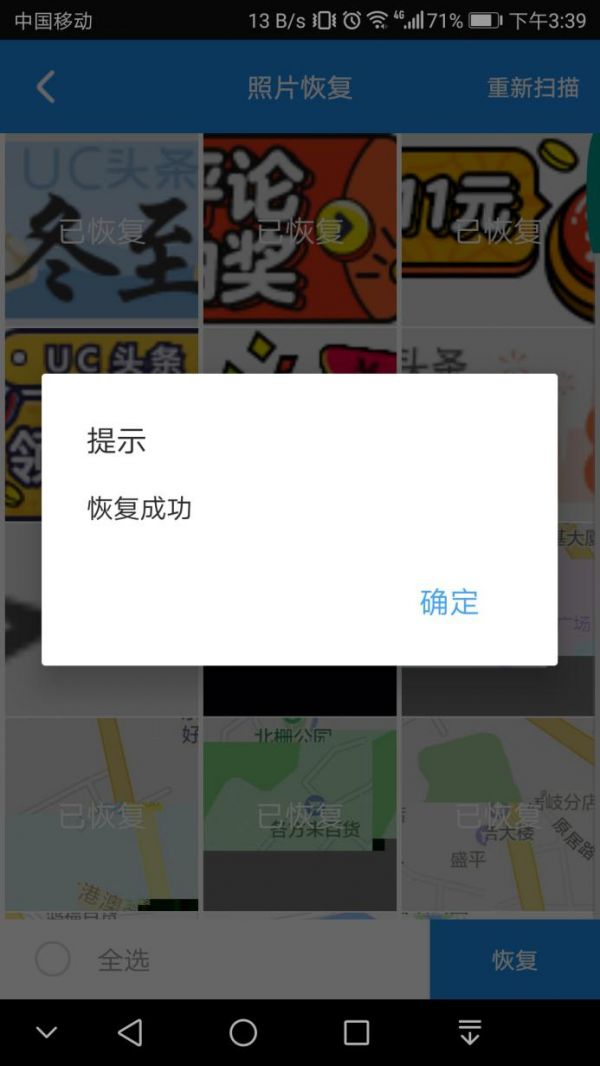 6、 确定好后,就可以选择自己想要恢复的图片进行恢复了。恢复完成后,会出现一个恢复成功的对话框,只要点击确定即可。