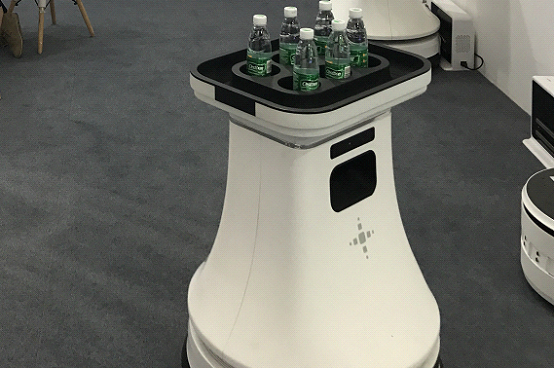这款通用型服务机器人开发平台ZEUS在此次思岚科技展厅充当了服务员的角色,承担了为参展者送水的责任,它具有智能行走、自主避障的能力,据介绍,ZEUS内置思岚科技自主研发的SLAMWARE(模块化自主定位导航系统),可实时获取机器人方位,同时自动建立高精度环境地图,并自主规划路径,有效避开环境障碍物移动到指定地点。还具有开放式的软硬件接口,可以满足不用场景的应用,例如商场、银行、医院、高档餐厅、办事大厅等场所。