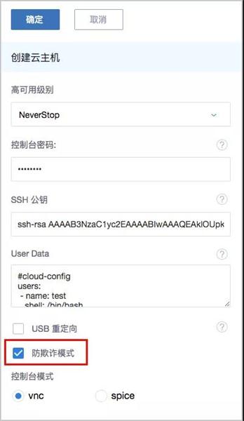 ZStack 3.1.0支持对单个云主机启用/停用防欺诈模式。