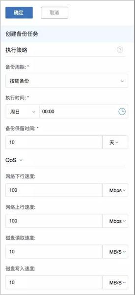 本地云主机/云盘的备份任务支持设置网络QoS和磁盘QoS,