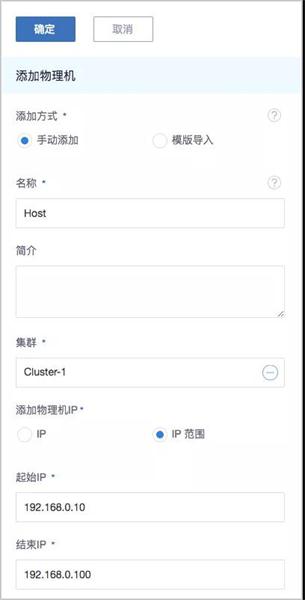 ZStack 3.1.0支持在UI界面上批量添加物理机,包括: