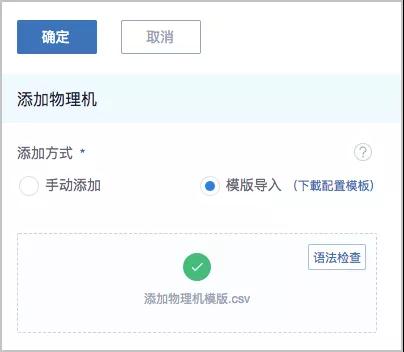 上传一个Excel文件就可以批量添加物理机和裸金属服务器,添加几百台机器的时候再也不用写API脚本也不用鼠标点到手抽筋了;