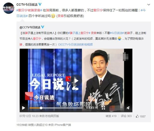 知名演员应采儿曾发微博称,自己遇到了诈骗集团,电话从“香港入境处”打来,谎称为“上海徐汇区公安局”,幸好助理此前关注过其他艺人被骗的报道,才敢直接挂掉电话。而央视主持人撒贝宁遇到的电话诈骗就更加离谱了,作为《今日说法》主持人,他竟然收到仿冒北京市公安局的诈骗电话,被指涉嫌拐卖儿童。这也令不少网友戏谑:骗子可算是“撞枪口”上了。