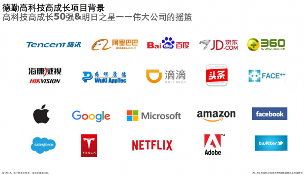 “高科技高成长50强评选”是德勤主办的全球顶级成长企业评选。1995年起源于美国硅谷,每年在美国、英国、日本、澳大利亚、中国等数十个国家同步举行。这一评选因其指标的严格性以及对企业未来发展的精准预测价值,而被誉为“发现未来独角兽的平台”、“高科技企业的奥斯卡”。