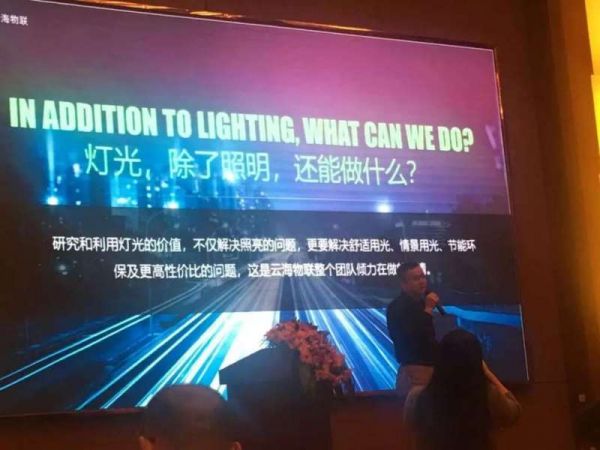 研讨会中,云海物联总经理黄敏强在《为照明灯具产品注入新思维》指出,研究和利用灯光的价值,不仅解决照亮的问题,更要解决舒适用光、情景用光、节能环保及更高性价比的问题,这是云海物联整个团队倾力在做的事情。随后,总经理黄敏强从“智能照明节约成本”“智能照明应用价值”“云海物联智能照明解决方案”三方面阐述照明灯具产品新思维。