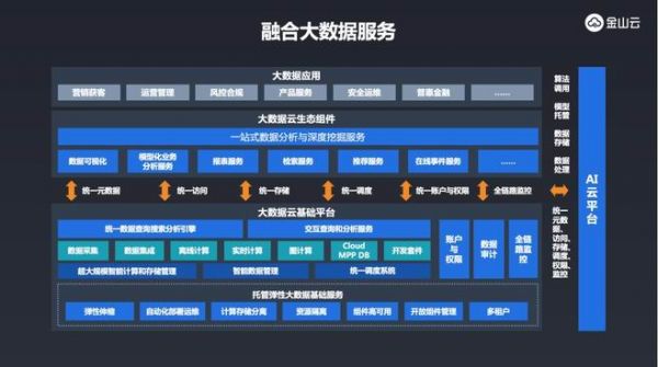 在数据的处理上,金山云提供托管弹性大数据基础服务、大数据云基础平台、大数据云生态组件、大数据应用一系列完善的融合大数据服务,通过在主流Hadoop、Spark框架之上构建端到端的大数据开发闭环,帮助客户一站式构建大数据处理能力,并通过接入AI云平台,极大提升数据处理效率。
