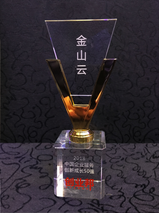 金山云荣获“2018中国企业服务创新成长50强”奖项