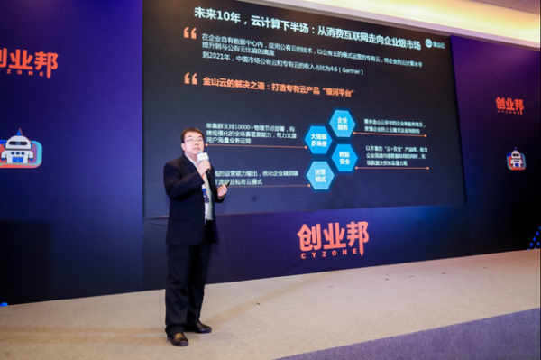 “区别于纯粹的私有云或公有云,金山云全栈专有云银河平台集合了两者的优势,更加契合当前企业级市场客户上云需求,”在12月5日举办的“创业邦100未来领袖峰会暨2018创业邦年会”上,金山云银河平台总经理孙鑫如是讲到,“我们通过将AI、大数据这些前沿技术能力开放给客户,让客户不用去操心底层逻辑框架,快速获取云+大数据+AI全融合技术能力,从而能更加聚焦于发展业务本身。”