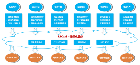 新一代的实时通讯发展不仅仅从技术上而且要从业务上满足客户的各种各样的场景化需求,RTCaaS(Real-Time Communication as a Service,实时通讯场景化SaaS服务)理念应运而出,不但满足传统的垂直领域的实时通讯服务需求,而且从技术升级和业务角度满足客户真正的音视频实时通讯需求。