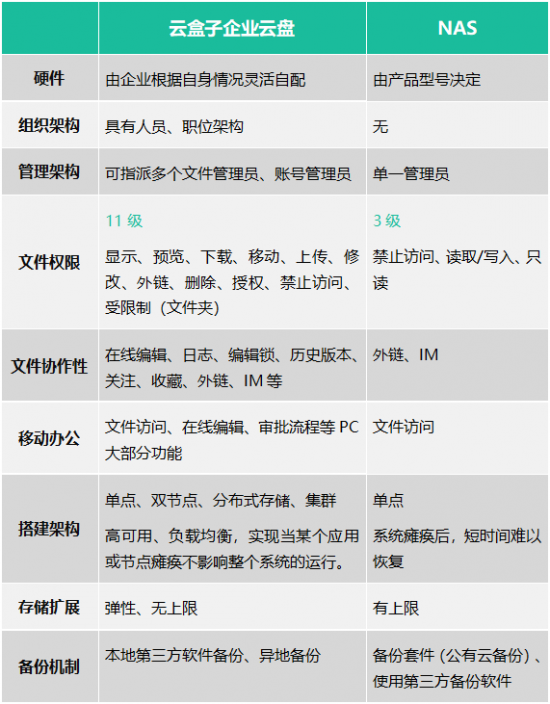 虽然NAS在个人、企业的文件共享市场上取得了一定的份额,但在进军企业市场的路上,存在架构上的先天不足。而云盒子云盘设计从企业底层需求出发,能给企业用户提供不一样的,更完善的企业文档协作解决方案。