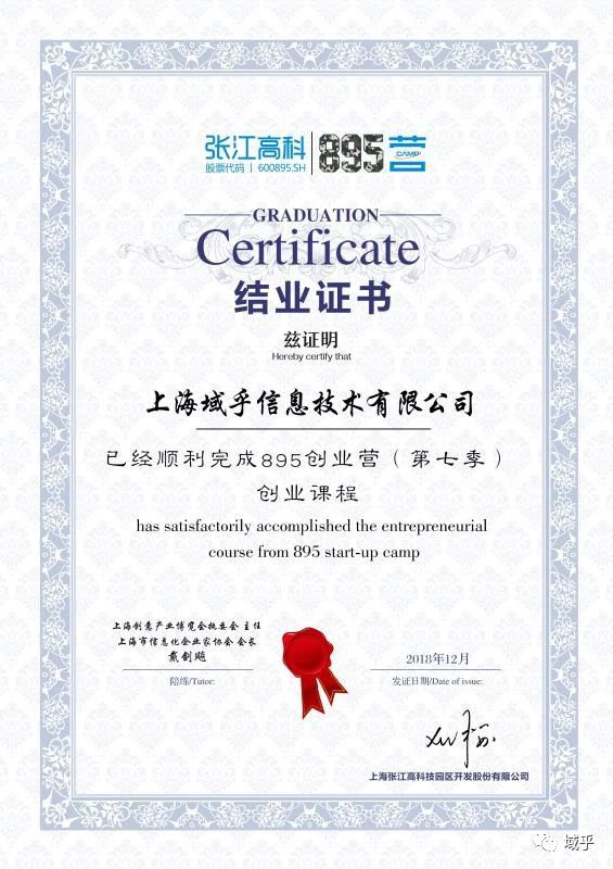 2018年12月26日,“智汇浦东·创见世界”浦东新区创新创业大赛迎来2018闭幕典礼和2019开幕仪式。作为为“国赛”提供服务及入营项目的张江高科895创业营(第七季)暨第三届创星创业营也迎来了结营仪式。上海域乎信息技术有限公司(以下简称“域乎”)作为唯一一家区块链企业参加了本次创业营并顺利结业。