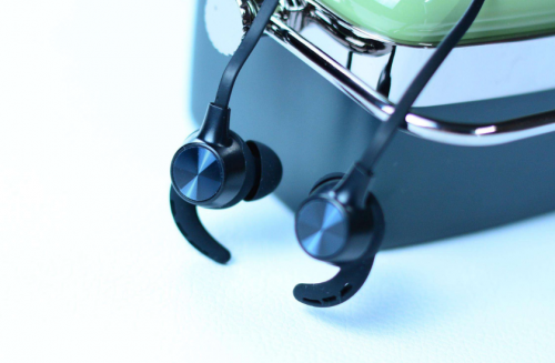 拜亚蓝牙耳机采用的是简单的绕线式设计,纯黑打底色给人沉稳且大气之感。 Byron BTA 外观有金属材质组成,金属耳腔设计可以极大提升声音的真实性,不过沉甸甸的重量感也会给佩戴者带来不少负重感。