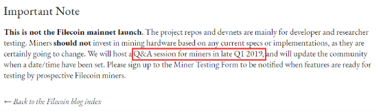 同时,IPFS协议实验室还披露,将于2019年第一季度末为矿工举办问答环节,并在设定日期后更新社区,有意参与测试的矿工需填报测试表格,以便获得测试通知。