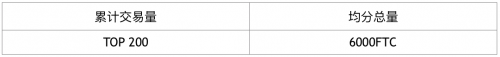 2、累计交易量排名(买入量+卖出量,但不含自成交)前TOP200的用户可均分6000FTC。