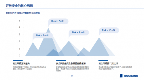 由此,罗清篮先生提出核心思想为“将机构内外部的安全风险转化成收益”的开放安全理念。