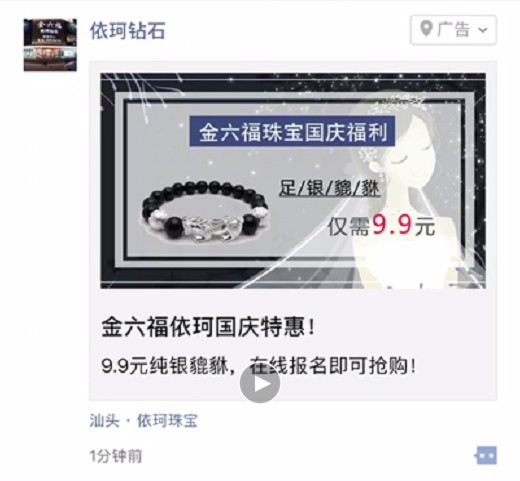 位于汕头的金六福依珂钻石门店,2018年9月使用加推智能商务工具后,仅仅1个月时间后,借助加推名片+节日营销热点,通过线上线下裂变推广成功引爆门店流量,实现了月平均获客1000人,门店新增15万业绩的销售效率提升。