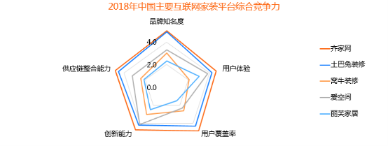 在综合竞争力方面,齐家网入局较早并且发展以来持续深耕产品服务、创新供应链建设,在海量品牌中优势明显,2018年上市后,资本的加持使得其用户覆盖率进一步上升,此外齐家网重视多维度布局,为用户解决资金等问题痛点,利用大数据及人工智能技术最大程度满足了新老用户在家装中的需求体验,综合竞争力最强。
