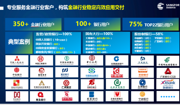 如今,深信服应用交付在金融领域取得了很大的突破,目前银行类客户超过100家。从监管机构中国人民银行到政策性的中国进出口银行,从四大行到股份制商业银行以及地方城商行、农商行,深信服应用交付都获得了规模性使用和广泛认可。同时,在中国人寿、平安保险等30多家保险公司,信达证券、中原证券等20多家证券公司中,都有高达几千台的部署应用。