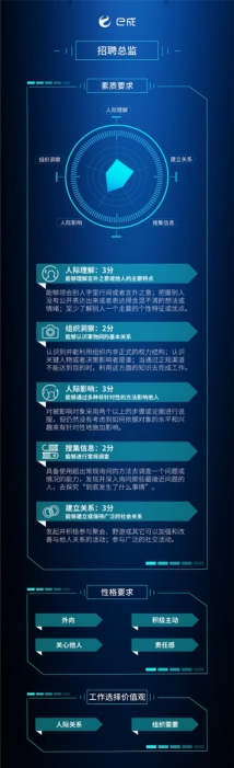 企业在不同的发展阶段,势必需要不同的人才,这些人才会有一些特质与企业在特定时期的需求匹配,这种特质表现在人才的性格、素质、喜好等方方面面,而画像,正是我们运用数字化手段来展现人才“冰山下”特质,帮助解决企业人才战略问题的起点。岗位画像只是解决了招怎样的人的问题,e成科技专业咨询顾问和解决方案专家还可以通过完整解决方案的制定和实施,帮你招对人、用好人 。