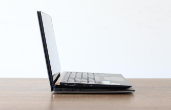 从侧面展示可以看出,华硕灵耀Deluxe13将机身有明显向上抬起。