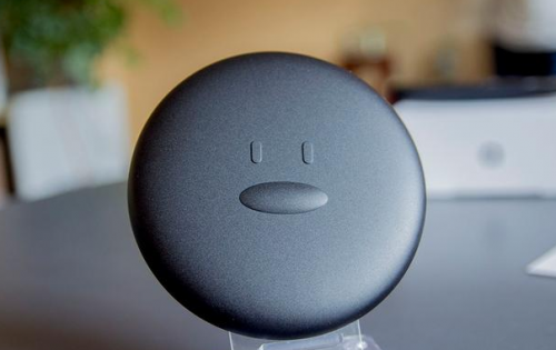 腾讯企鹅极光1V网络机顶盒采用的是聚碳酸酯材质的圆饼设计,正面印有企鹅的图案,整体感觉非常的呆萌可爱。而在极光1V机顶盒背面,有着防滑胶圈的设计,可以使企鹅极光1v更加稳固的进行放置。