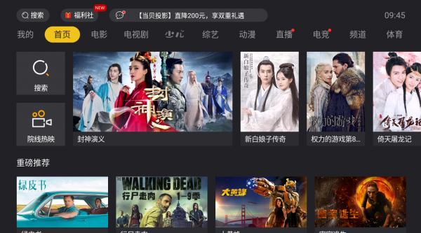 在当贝影视快搜主页,用户可根据个人观看需求选择电影、电视剧、综艺、少儿、动漫、体育等内容的点播观看,当贝影视快搜同时会智能推荐院线最火大片及最新最热的电视剧,帮助用户获得更好的观剧体验。