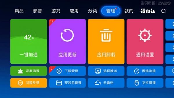 除了支持海量应用下载,当贝市场还自带系统管理功能,用户可一键深度清理当贝投影仪F1设备中的缓存及电视垃圾,提升当贝投影仪F1的运行速度,并进行电视软件的安装卸载管理。