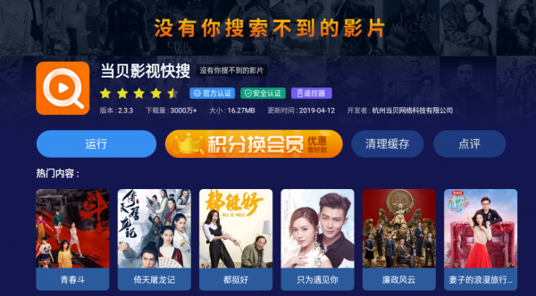 当贝影视快搜在手,全网影视都有!当贝影视快搜作为TV端内容搜索引擎,汇集了全网99%的视频资源,无缝接入各大视频软件,免去了用户需要多个应用切换查找影片的烦恼。