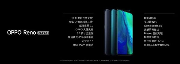 在美丽的外表下,OPPO Reno还有一颗强悍的“芯”。OPPO Reno和OPPO Reno十倍变焦版分别采用了骁龙710和骁龙855,从而更好的满足不同用户需求,3765mAh 电池+VOOC 3.0闪充的加入,让Reno不仅是性能怪兽,还是续航怪兽,再加上NFC、ColorOS 6、Game Boost 2.0等新技术的加入,让OPPO Reno真正树立了旗舰手机的标准,几乎找不到什么短板。