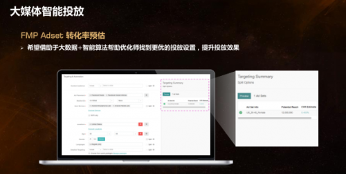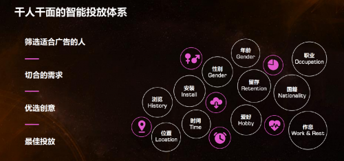 在实际的广告投放工作中,汇量科技为出海企业设计了一整套千人千面的智能投放体系。基于对大数据的挖掘,千人千面投放体系可以结合用户的实时数据,对不同平台的不同用户贴上特定标签。该体系帮助企业筛选出合适的人群,从更细致的角度去迎合用户需求。其二是大媒体智能投放。通过offer投放需求数据入库,智能化地选择在facebook等平台进行广告发布,最后数据返回进行投放优化,整个过程帮助企业提升投放效果。