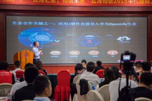随着,主持人的宣告开场,首先是云海物联总经理黄敏强致辞宣讲云海物联2019年战略规划。