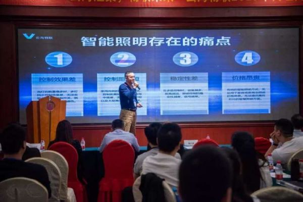 云海物联总经理发布了第一战略规划智慧照明系统,阐述了智慧照明市场的痛点,云海物联智慧照明解决方案的优势,云海物联智慧照明系统通过独特的算法优化,使得控制效果提升一个数量级,使用在商业照明优势更大,可同时控制数万盏灯,能够实现多灯同步控制的一致性,统一开关、调节灯的亮度及色温。最后,发布了E+智能家居商城(纽凌智能)。