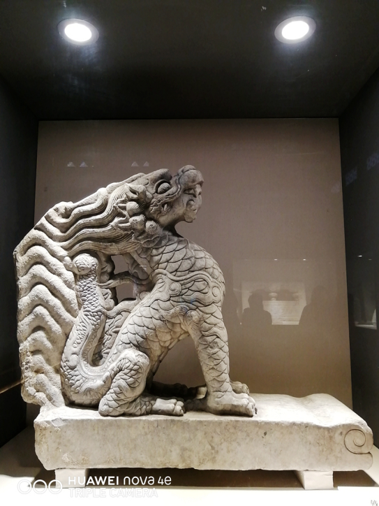 室内的灯光本来就是很复杂的,而且在每个展览的玻璃内还都有射灯,这是一张暗光室内的拍照效果,整个照片的光源在中间位置,一般来说,暗光环境下的效果都会略有差异,但从华为nova 4e拍照样张来看,石盆的花纹、假山、麒麟身上的鳞片,包括眼睛、胡须都很细腻,没有出现过曝、色彩失真等现象。