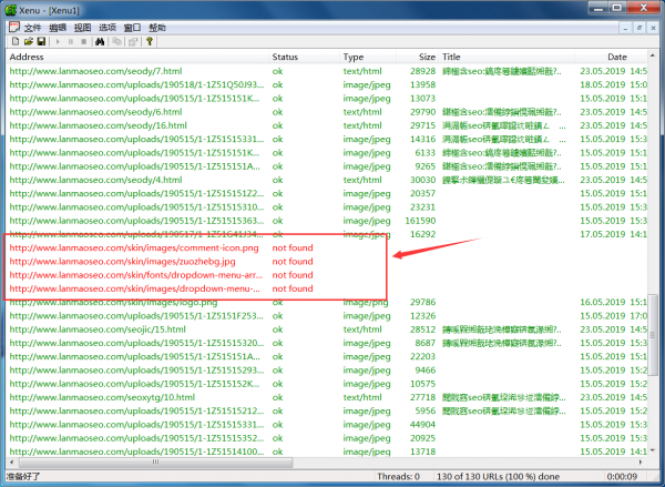 等工具检查完毕后我们就可以看到网站所有的链接(包括死链接,红色的)如图: