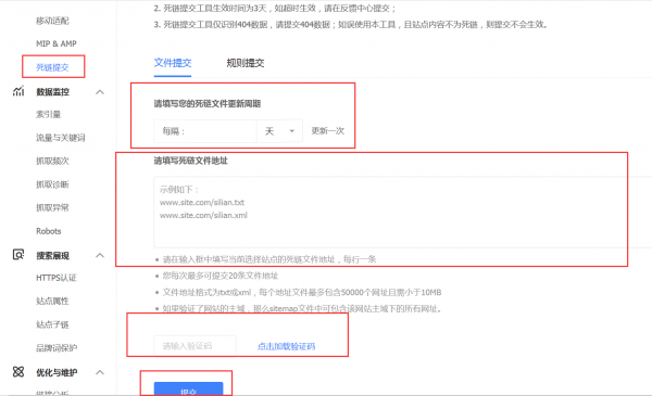 检查出来后把所有的死链接放在一个文本文档里,然后通过站长平台做好死链提交: