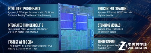 四,搭载性能更强,最高拥有64EU、1TFLOP运算能力的GEN 11核芯显卡;