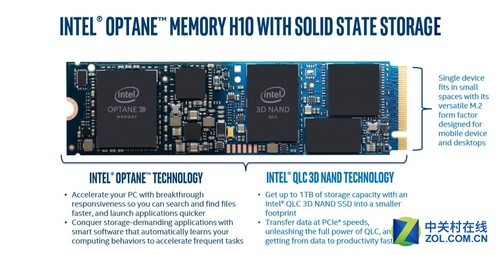 年初CES,英特尔公布了全新的傲腾H10混合固态盘,相对于以往的Optane Memory来说,傲腾H10混合固态盘主要在于把Optane Memory与英特尔QLC固态硬盘整合在了一起。因此将Optane Memory的非易失性存储特性以及低延迟、快速响应、性能一致性等特点。与英特尔QLC 3D NAND技术的高单元密度、低成本特性,很好的结合在了一起。