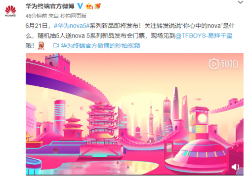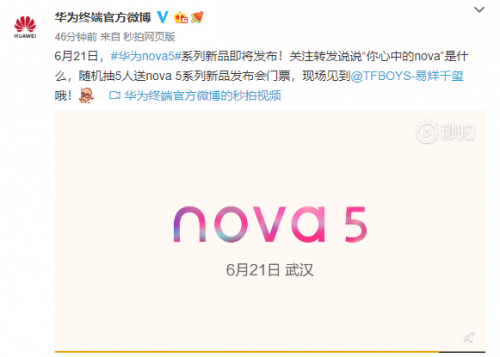 华为终端官方微博预告nova5发布日期