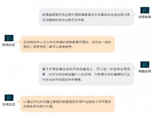 现有的溯源体系的根源来自于各个环节自我申报信息的检索和汇总,但这些上传的信息既缺乏互相环节的印证,又带有明显的目的性,因此可行度存疑。