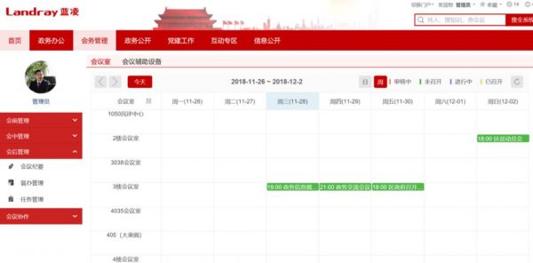 蓝凌全新政务会议管理平台,支撑中央、省、市、县、乡各级党政机关、政府职能部门会议全业务流程管理,实现从会前议题确定、会议审批、会议筹备、会中会议服务、会后工作落实全过程闭环式会议管理,支持议题与会议相关联、会议纪要转督办、会议统计、会议配置监控等一系列工作。
