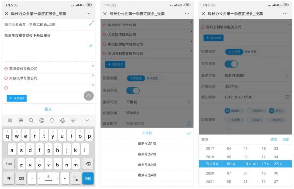 涉及会议投票决策,可提前将表决项输入系统,支持多项图文标题、截止时间、投票人员等项设置,也可以会中实时投票,并统计结果,透明又高效。