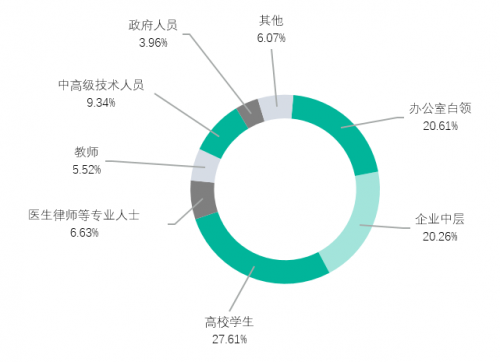 在CS扫描全能王用户群体中,职场人士占比高为66.32%,进一步细分:办公室白领、企业中层、中*技术人员、教师、医生、律师、政府人员等,其次为高校学生,占比为27.61%,学生可能会使用CS扫描全能王扫描学习资料、纸质手绘等,较受学生欢迎。整体来看,用户人群职业构成较为广泛。